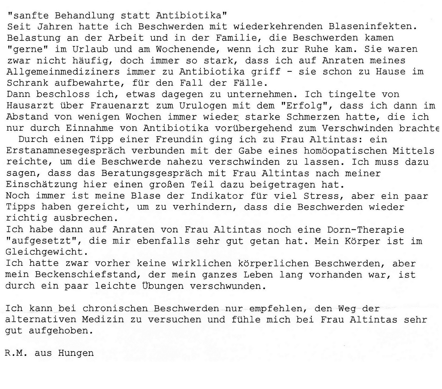 - Kurz zusammengefasst, mir geht es Dank der Behandlung bei Frau Altintas wieder Super! - Nina